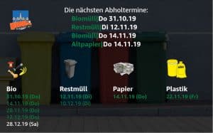 Müllabholungen in Zeitraum – großes Display